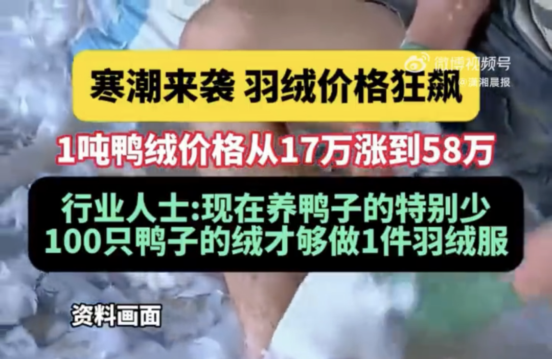 根据《中国新闻周刊》的采访,今年羽绒服生产旺季,羽绒价格涨幅最高达35%,远高于去年的10%。