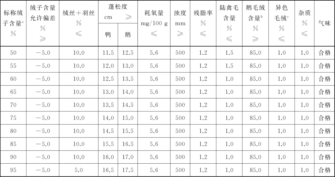 而对绒子的鸭绒和鹅绒含量以及比例也有明确要求:杂质和异色毛绒小于1%,才算合格。