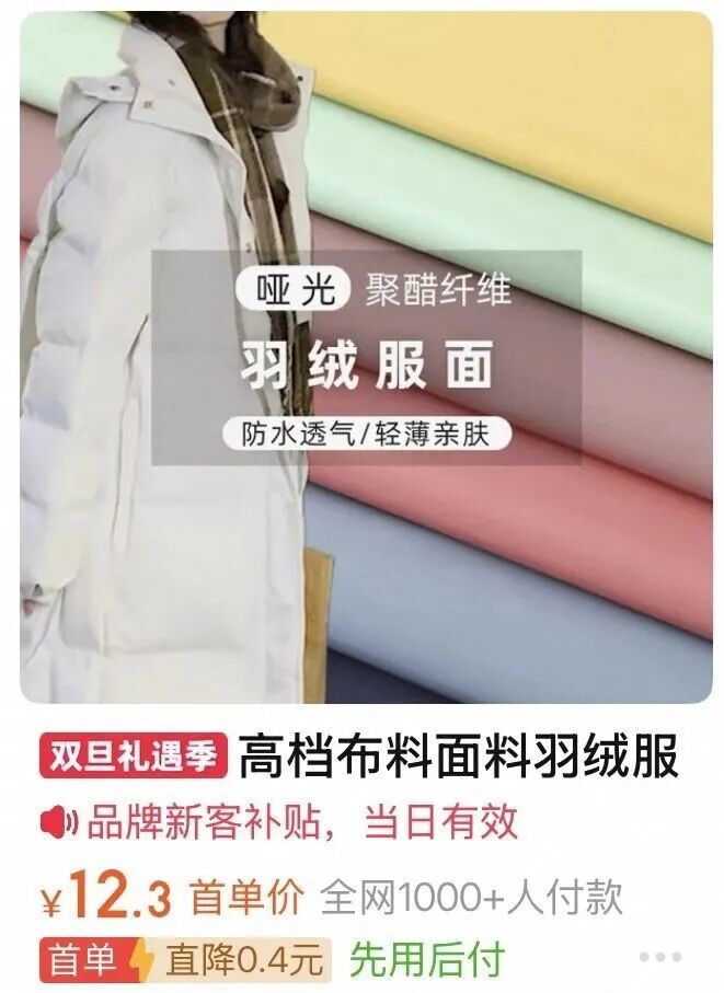 还有人因为面料买得比较劣质,做出来羽绒服吹弹可破跟宣纸似的。